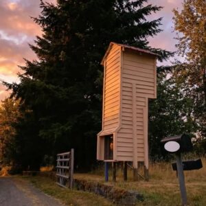 Along a peaceful rural road north of Gresham, Oregon, drivers sometimes notice an unusual structure standing quietly at the end of a driveway. The tall, narrow tower…