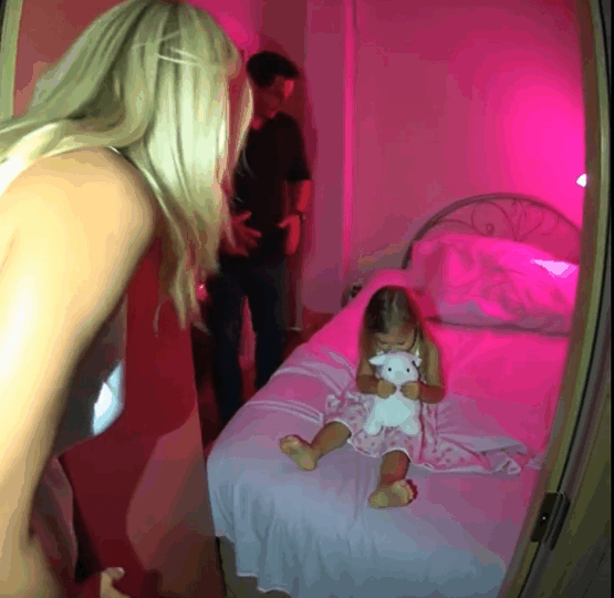 Her wide eyes darted from her mother to Mark, searching for something—protection, explanation, reassurance, any anchor that could stabilize the world that seemed to shift violently beneath her small frame.