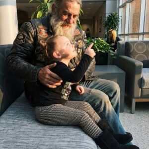 The subway car fell unusually quiet when people noticed the biker. He was big, dressed in leather, covered in tattoos — and openly crying while holding a…