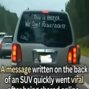 It began with a single photo. A highway in America, an SUV moving through traffic, and a rear window scrawled with a handwritten message: “This is America……