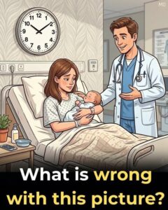 Imagine a peaceful scene inside a hospital maternity room. A new mother sits comfortably while holding her newborn baby, and a doctor stands nearby checking on both of them. Medical equipment is neatly arranged around the room, and everything appears calm and routine. On the wall hangs a clock, quietly marking the passing time. At first glance, nothing in the room appears unusual, and most viewers assume the scene represents a normal moment after the birth of a child. However, hidden within this ordinary setting is a small detail that many people fail to notice during their first look.