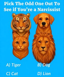 At first glance, this quiz feels like a simple visual puzzle: four animals—a tiger, a dog, a cat, and a lion—appear on the screen, and you’re asked to choose which one doesn’t belong. It seems straightforward, but the fun lies in how your instinctive choice can reflect aspects of your personality. It’s not a scientific assessment, but rather a lighthearted way to explore themes like confidence, empathy, independence, and how you relate to others. Many people discover that their selection reveals something about their natural tendencies—whether they lean toward boldness, gentleness, or thoughtful observation.