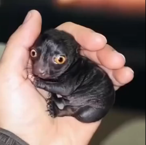 The animal was barely larger than the palm of a hand and covered in short, dark black fur. Its features were underdeveloped, its eyes tightly closed, and its movements weak and uncertain.