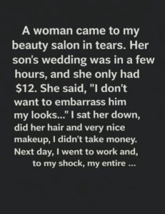 The next morning, I arrived at the salon to find flowers covering the entrance. Lilies, roses, and wildflowers overflowed onto the sidewalk, carefully arranged to convey gratitude and warmth in a display that was both unexpected and deeply moving.