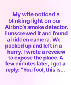 A setup designed to watch, collect, and perhaps even track the people who stayed there. The “reviews” that had given us confidence were likely fabricated. The staged photos that had made us feel secure were carefully constructed illusions.