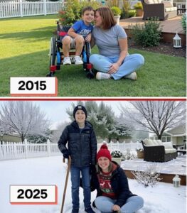 Evan’s progress was remarkable. Through consistent care, physical therapy, and Amy’s unwavering support, he began walking short distances with crutches, achieving milestones that many considered impossible.