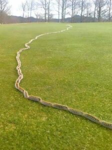 To my surprise, what I had mistaken for a rope or a snake turned out to be a line of about 150 caterpillars crawling in a straight line. I was fascinated—I had never seen caterpillars behave like that before. They were tightly packed, moving as if following an invisible guide. I couldn’t help but wonder about their purpose or destination.