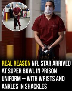 So why the prison outfit, then? Part performance art, part playful irony, and part Hollins just doing him. Add barefoot flair, a mask, and shackles, and suddenly the Super Bowl felt a little more… interesting.