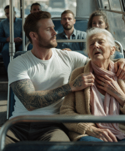 The bus rolled to a stop as the sirens wailed closer. Paramedics rushed aboard, immediately transferring her to a stretcher. But even as they worked, the woman’s eyes stayed on the young man.