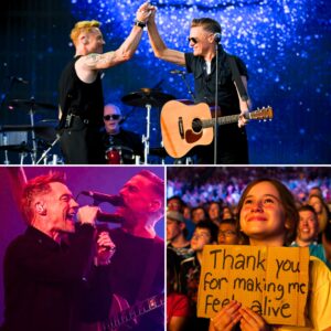 The moment that made the whole audience burst into tears! Ronan Keating and Bryan Adams unexpectedly sang a duet of “The Way You Make Me Feel”, but what fans could not forget was a little girl below sobbing, holding a sign that said: “Thank you for making me feel alive”.