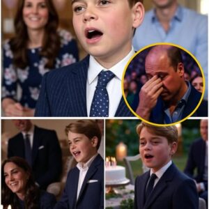 “Dad, this song is for you” — And the entire royal garden fell silent… On Prince William’s 43rd birthday, all eyes were on the candlelit banquet beneath ancient oak trees at Windsor Castle. But no one knew the true heartbeat of the evening was yet to come—a heartbeat pulsing with fatherly love. As the sun dipped below the horizon, young Prince George quietly stepped onto the small stage. He gave his mother—Princess Catherine—a gentle squeeze of the hand, then began to sing: “You Raise Me Up” flowed softly, like a breath, trembling with the weight of truth. William was frozen. In that moment, he wasn’t a prince. He wasn’t even a father. He was simply a man, overwhelmed by the purest gift imaginable: the love of his son. And in that silent garden, no crown in the world could shine brighter than the embrace between a father and his boy.