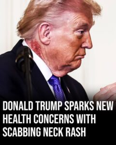 Fresh questions about Donald Trump’s health are circulating once again after the president appeared at a Medal of Honor ceremony with a visibly irritated, scabbing rash on his neck.