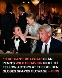 The 2026 Golden Globes delivered everything fans expect—glamour, awards, and big celebrity energy—but one quick, unscripted moment stole the spotlight after the show ended. Cameras caught Sean Penn seated at a table surrounded by champagne glasses, elegant décor, and fellow stars, looking completely relaxed in a setting where most people stay carefully “on.” The scene was brief, but the reactions around him—some surprised, some amused—made it instantly stand out, and within hours the clip and photos were spreading across social media like wildfire.