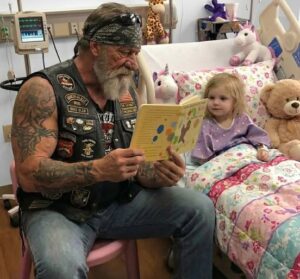 I first met Amara on a Thursday afternoon, the day I walked into room 432 with a children’s book in my hand and a leather vest on my back. I’m a 58-year-old biker—tattoos up my arms, beard to my chest, the kind of man most kids initially shrink from. But she didn’t. Seven years old, bald from chemo, small as a bird beneath hospital blankets, she looked at me with those huge brown eyes and asked me, almost shyly, to read to her. The nurse had already warned me: her mother had dropped her off for treatment and never returned, CPS couldn’t find family, and the cancer was spreading faster than anyone wanted to admit. I’d read to dying kids before, but something about the loneliness in her room cut deeper. When she asked whether I missed being a father—after losing my own daughter twenty years earlier—I felt a crack open that I thought time had sealed shut.