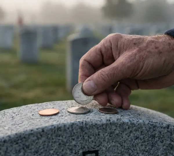 At first glance, a few coins resting on a gravestone might appear insignificant, easily overlooked among flowers, wreaths, or flags. Yet, in many American military cemeteries, these small objects carry profound, intentional meaning for those who understand.