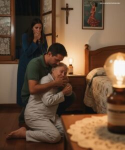 Ethan wasn’t lying beside his mother. He sat next to her on the bed, holding her trembling hand. The older woman’s voice quivered in the dark.