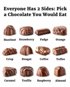 In the end, choosing a chocolate isn’t just about picking a treat—it’s a small reminder of how unique and layered we are as individuals. Each flavor represents a different mood, a different kind of comfort, a different spark of curiosity. And each choice carries a quiet message about what we’re craving in life, whether it’s stability, joy, adventure, or simply a moment of sweetness. So the next time you’re offered an assortment, take a second to notice which piece you choose. It might reveal more about your day—and your heart—than you expect.