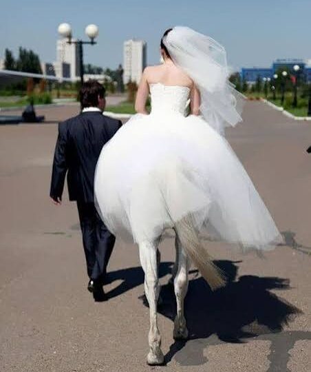 In a wedding scene, for instance, the positioning of a person and an animal might create the illusion of a bizarre and impossible situation. The humor and confusion come from that temporary misinterpretation.