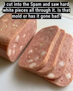 Many people have experienced that brief moment of confusion—or even concern—when opening a can of Spam and noticing small white bits scattered throughout the meat. At first glance, these pale spots can look unusual, especially if you’re not familiar with how processed meats are made.